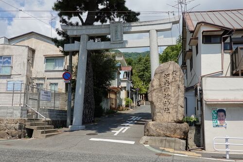 神戸らしい、六甲山に至る斜面上にならぶ穏やかな住宅街の中に、この古めかしい古社が鎮座します。こちらがズバリ、凡河内氏が関わるとされる「式内社河内国魂神社」を名乗る神社ですが、その頭に「五毛天神」名も付され、あくまで天神さんである事を静かに…